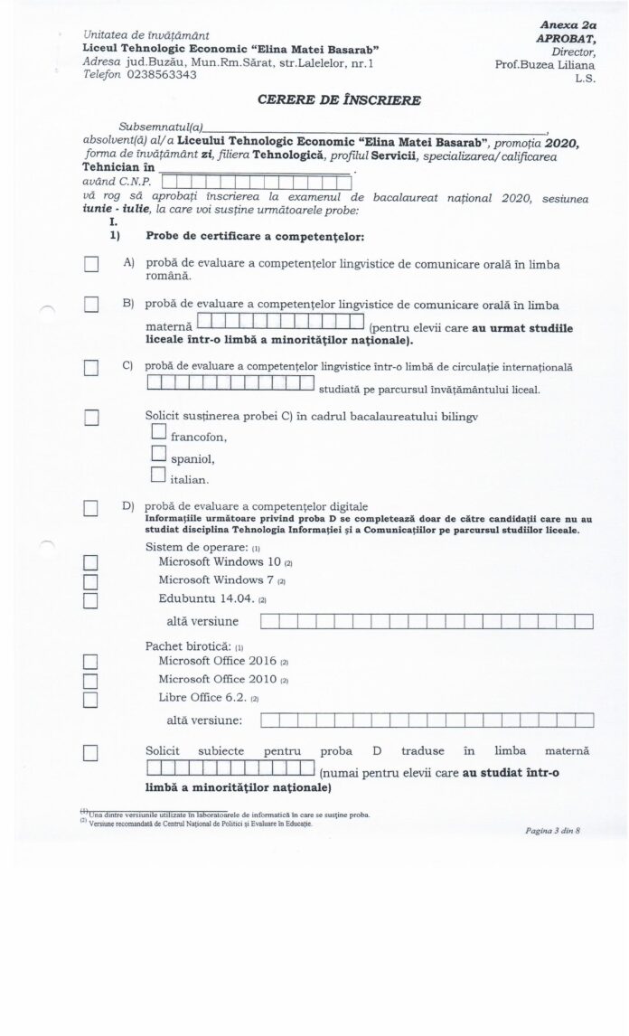 Anunț înscriere