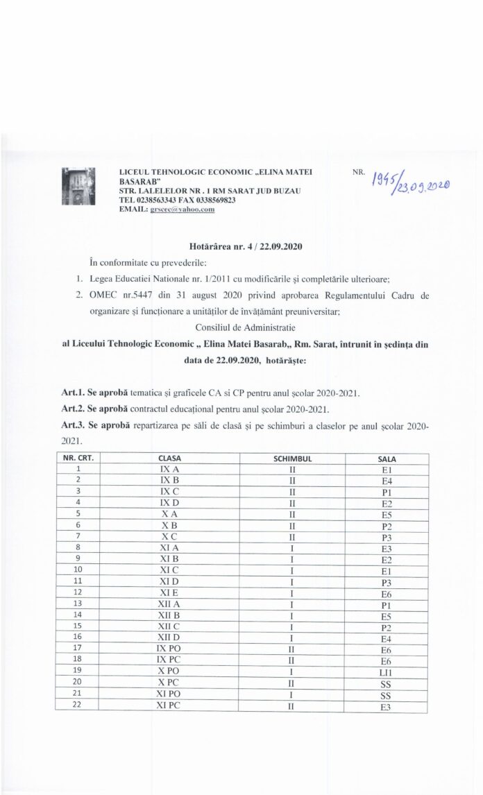 Hotărârea nr.4 / 22.09.2020